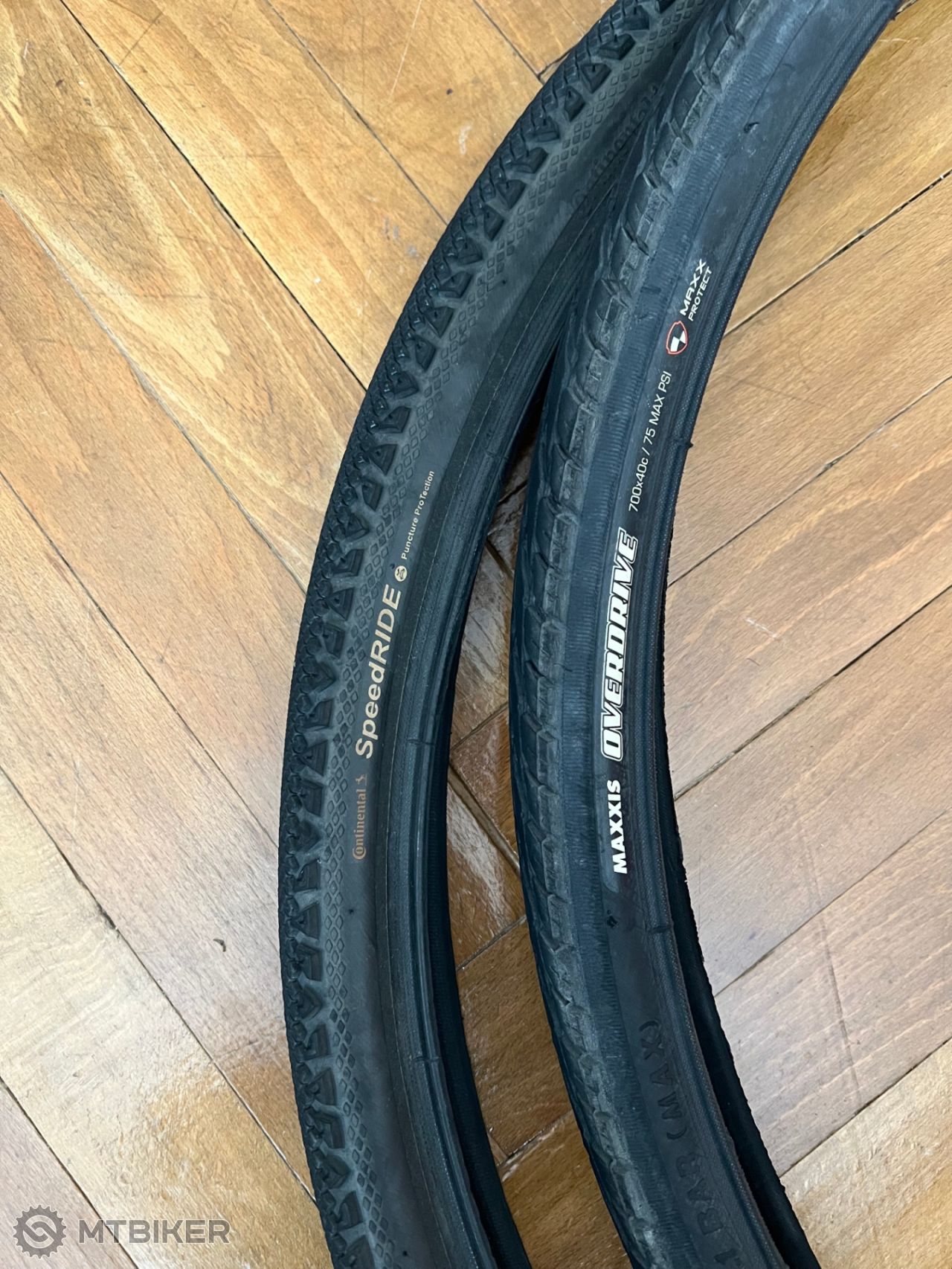 Predám dva plášte - Maxxis Overdrive 700x40c, Contintental SpeedRide 700x40c, oba v 90% stave. Kus 8e, oba spolu 15e.