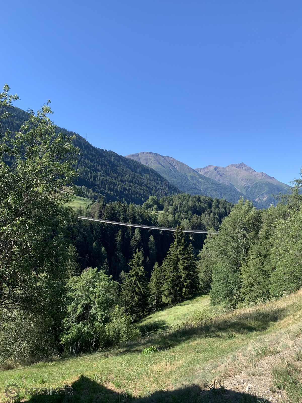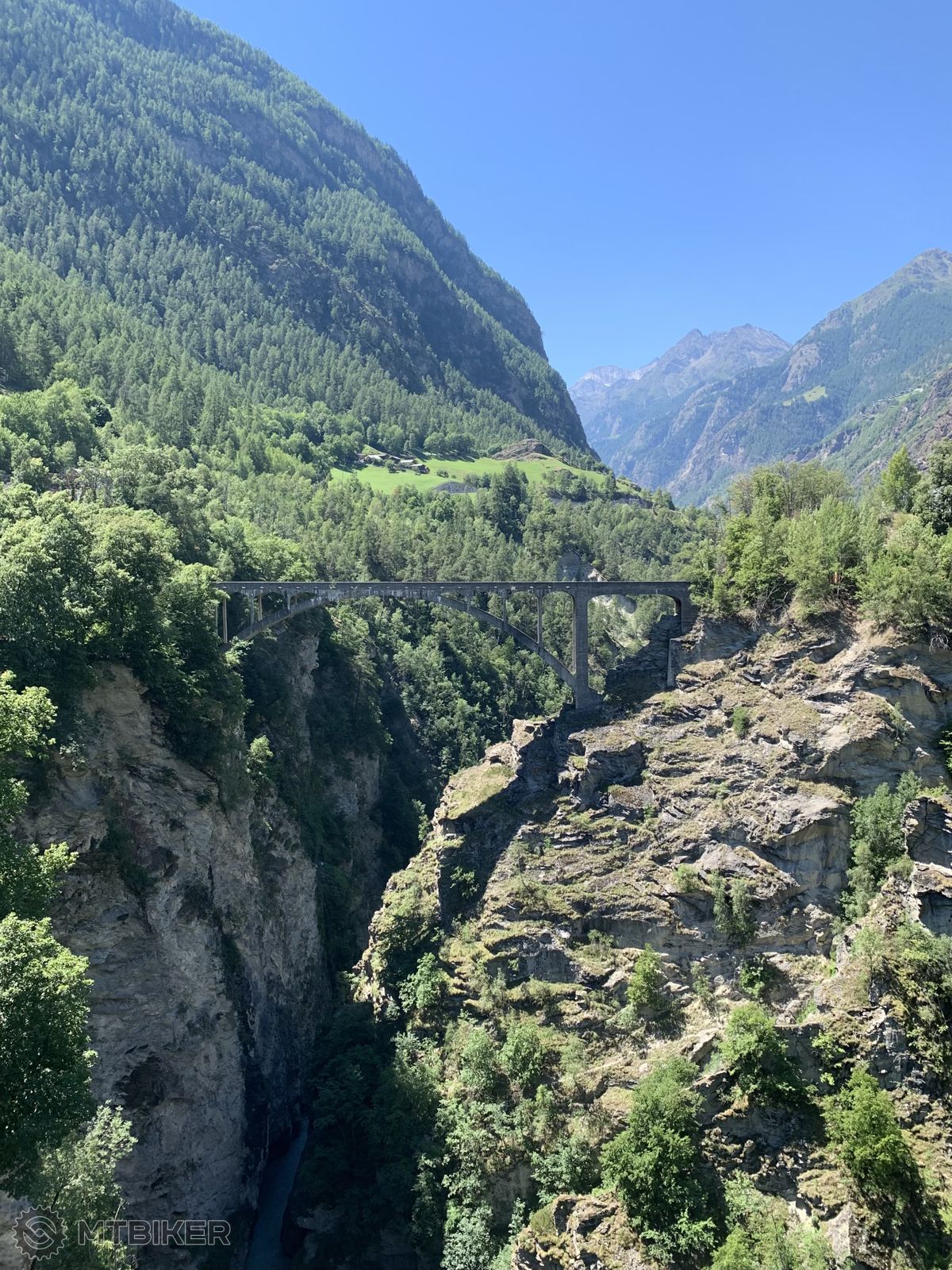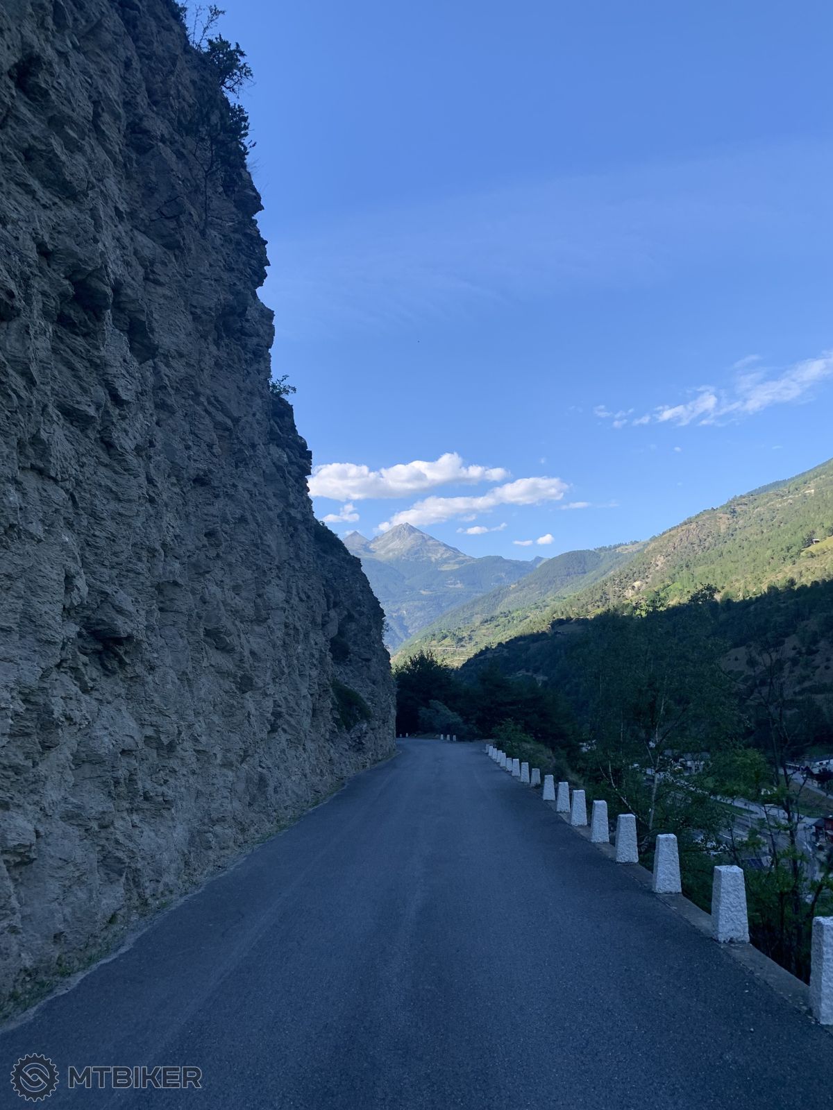 Som na začiatku doliny, kde sa začína stúpanie do Zermattu. Cyklopočítač ukazuje 41 °C. Veľa áut. Cyklocesta sa našťastie čoskoro odpojí a vedie popod (a aj ponad) skalný útes. Švajčiari to fakt s tými zvodidlami nepreháňajú. Nie, to je nepresné. Oni zvodidlá vôbec neriešia. Je to strašne nebezpečné! Keby to videli naši, tak by mali ďalšiu tému pre návštevy do série „Ako Paťka spala s nožom pod posteľou“.