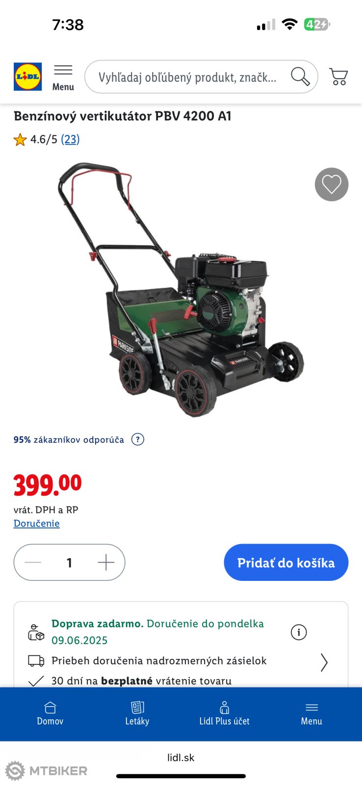 Niekedy mám pocit , že v tom ich E-shope pracujú schizofrenici … alebo sú to odlišne predajne , neviem 🤷🏼♂️. Na stránke Lidl je cena za tento konkrétny stroj 299€ a na Lidl plus 399€ . Ale však stovka sem , stofka tám . Ja som ho kupoval ešte s 20% zľavou z Lidl shopu a poviem Vám parádny stroj za tu cenu .