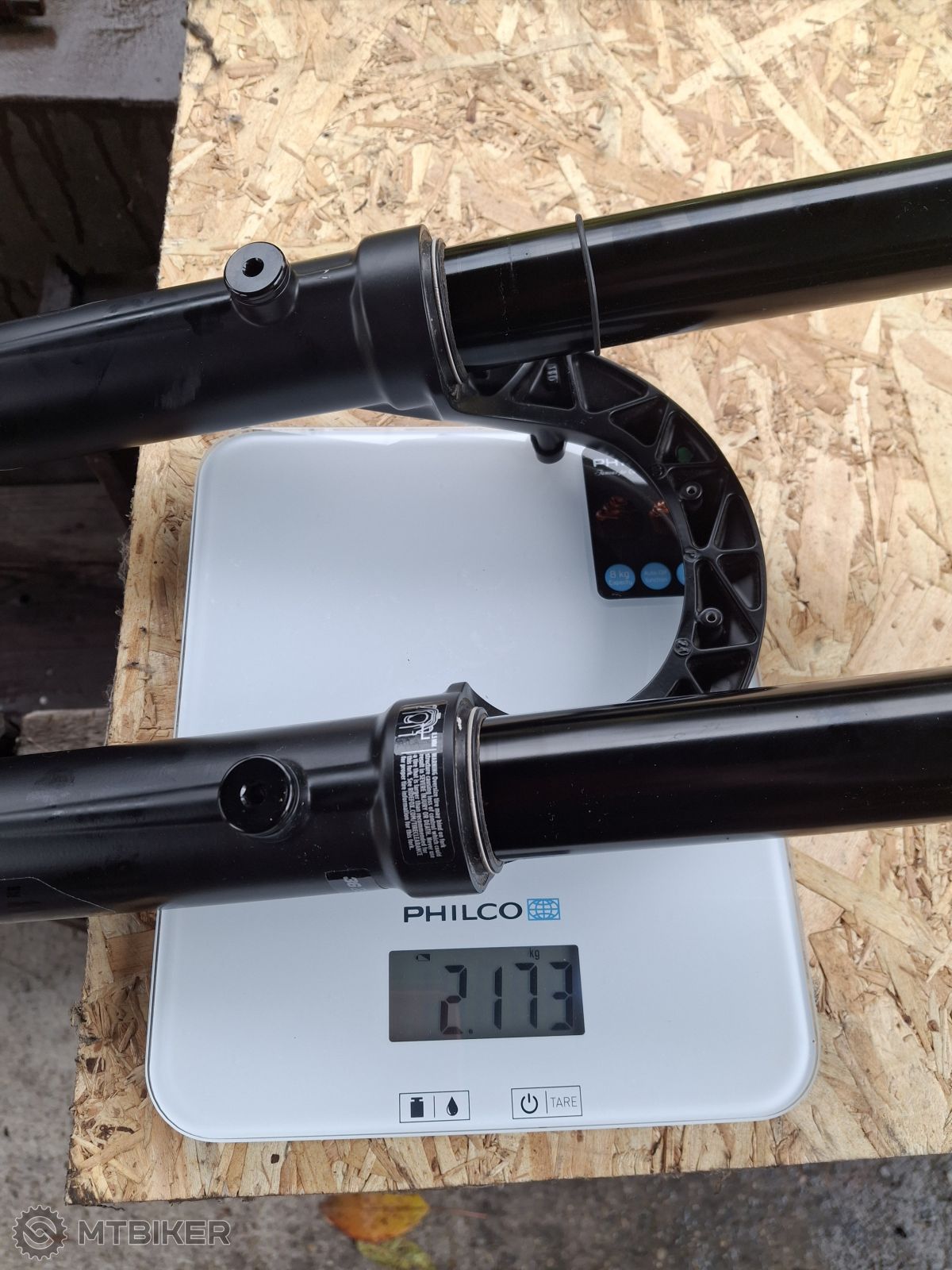 Takže Fox 36 Rhytm 150 mm zo základnou patrónou Fit Grip (zrezaný krk na 198 mm,narazený ježko,namontovaný držiak na brzdovú hadicu) vážená bez osky má 2173 gr. (čo nie je až taká katastrofa)