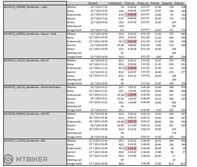 stink, nacitanie ide, vdaka. Urobil som este pre zaujimavost porovnanie nacitanych hodnot v roznych aplikaciach. Orientacne sedi vsetko okrem prevysenia, kde su znacne rozdiely, MTBiker vyjazdy vsak davaju bezpecne najviac, za nim v zavese original Holux ezTour plus, ostatne aplikacie su triezvejsie... Tazko to teda teda overit "presne", nezda sa mi, ze by okolo Neusiedlu na 85 km trase bolo prevysenie 950 m (B10 - Rakuska cast). Ako sa pocita stupanie/klesanie?