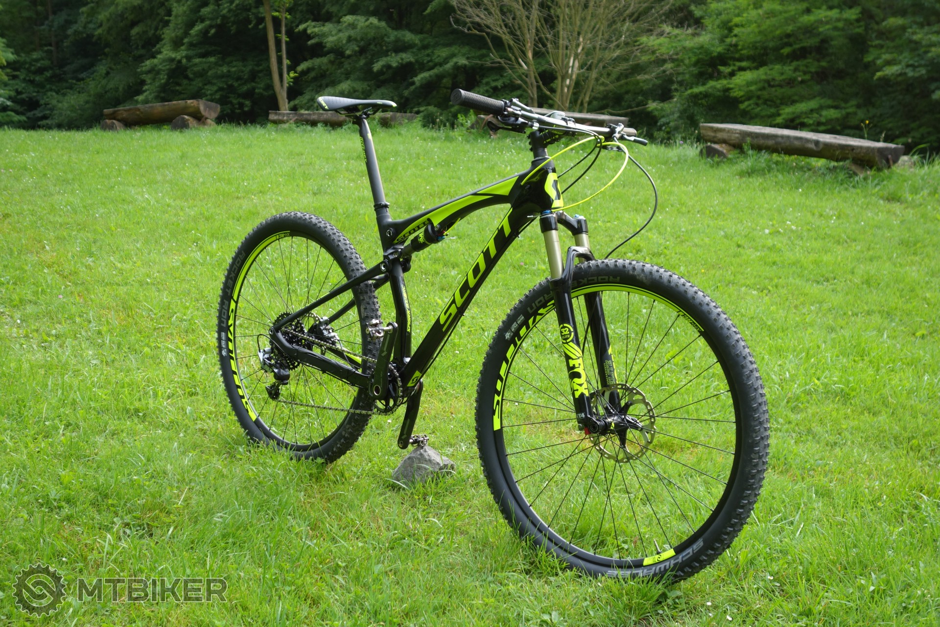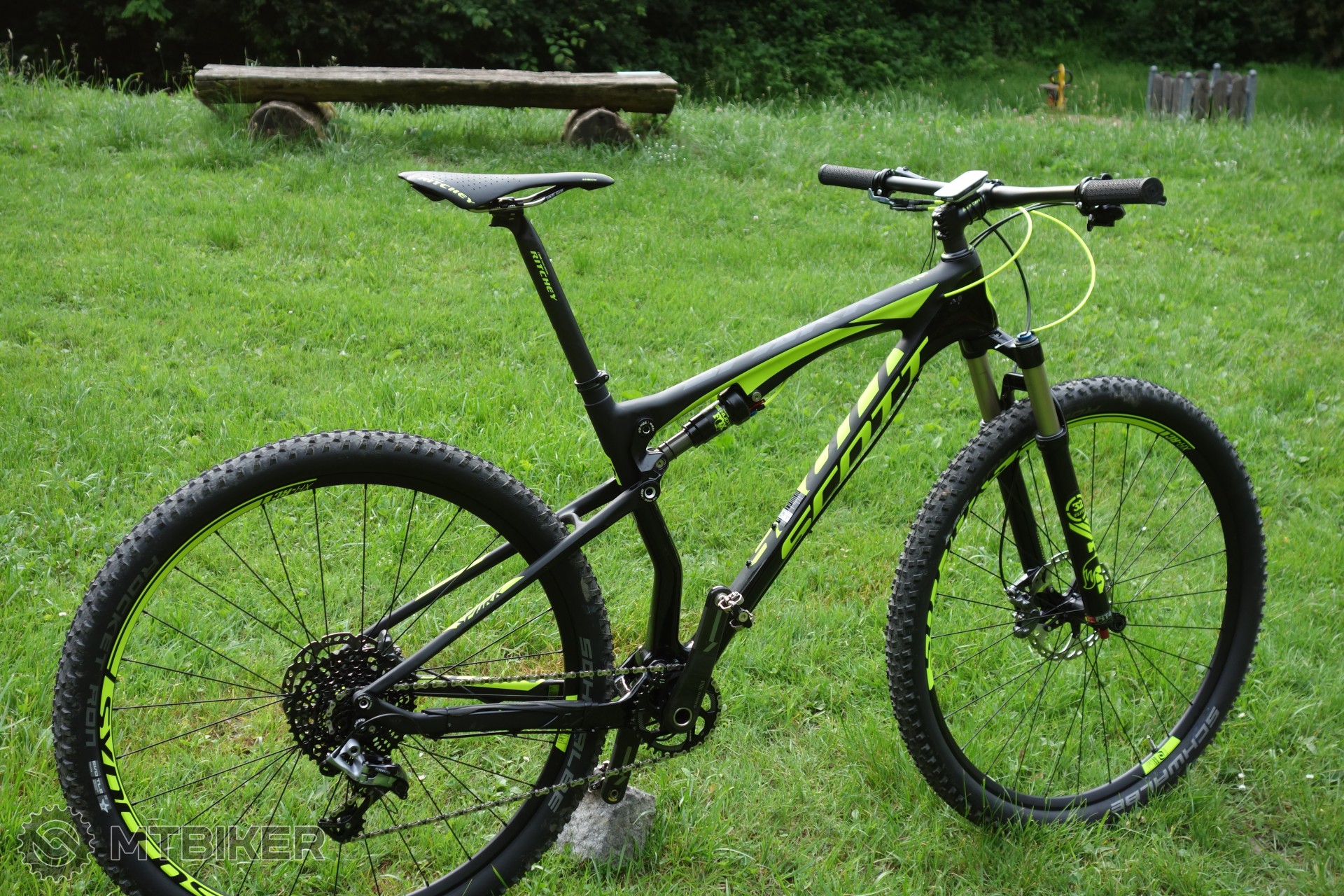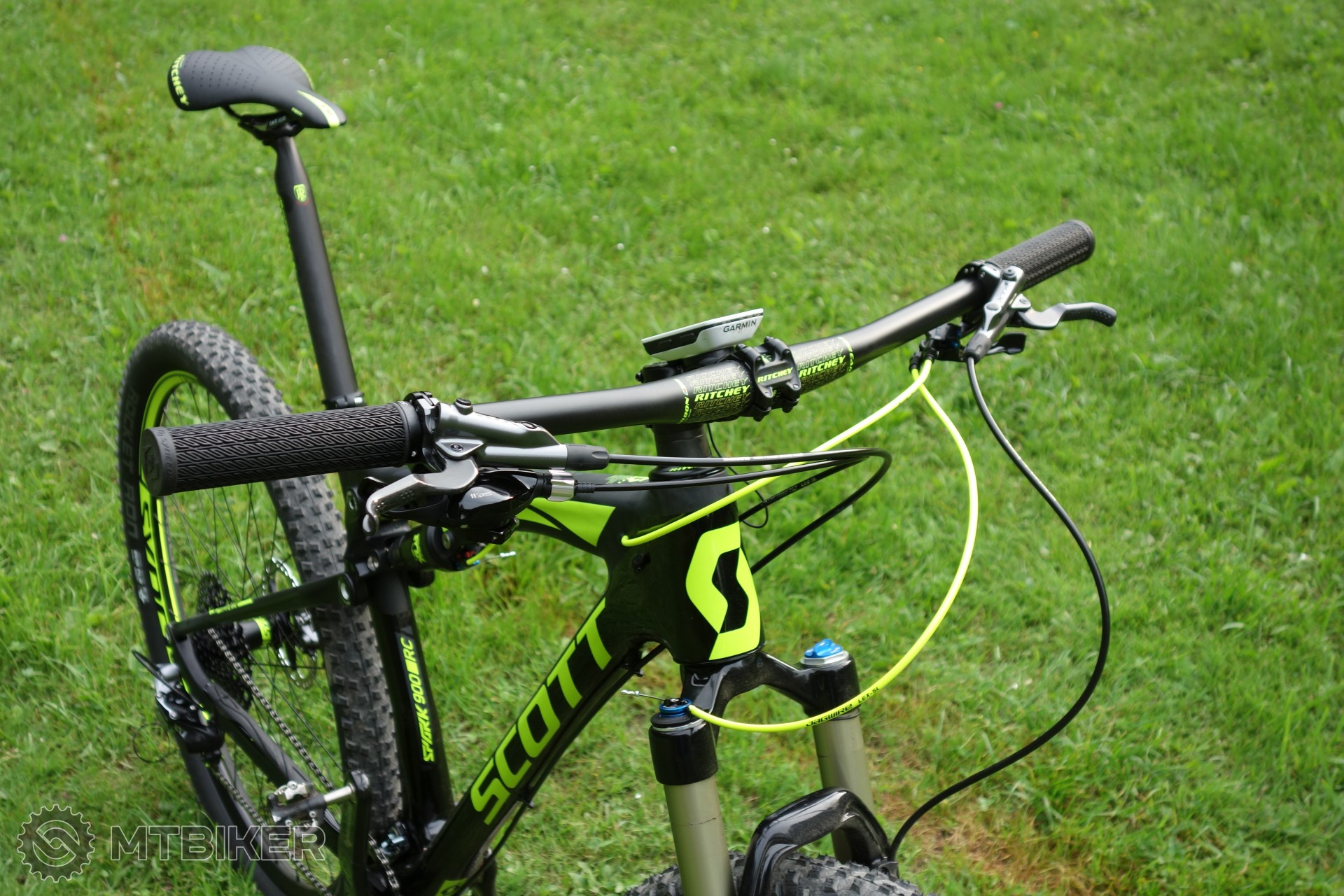 Bike na fotkach je povodny setup ako prisiel v krabici, nevedel som sa dockat prvej jazdy, prestavovanie kablikov by mi zabralo pol dna, to vymenim neskor, lanko na prehadzovacke je uz skratene