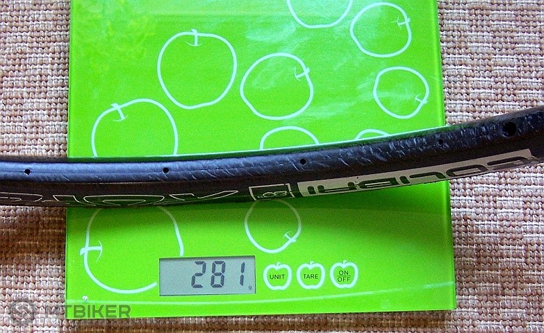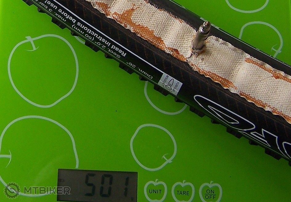 Tá hmotnosť je s nálepkami, vrstvou galuskového lepidla a pridaním váhy opravou karbónu. Týmto nechcem chváliť nízku hmotnosť ale upozorniť, že v priebehu dvoch rokov som ho už dvakrát "načal". Jedná sa o 26 palcový TUFO Colibri. Po druhom poškodení som si už radšej zohnal iný 365 gramový. Dúfam, že ten už viacej vydrží.