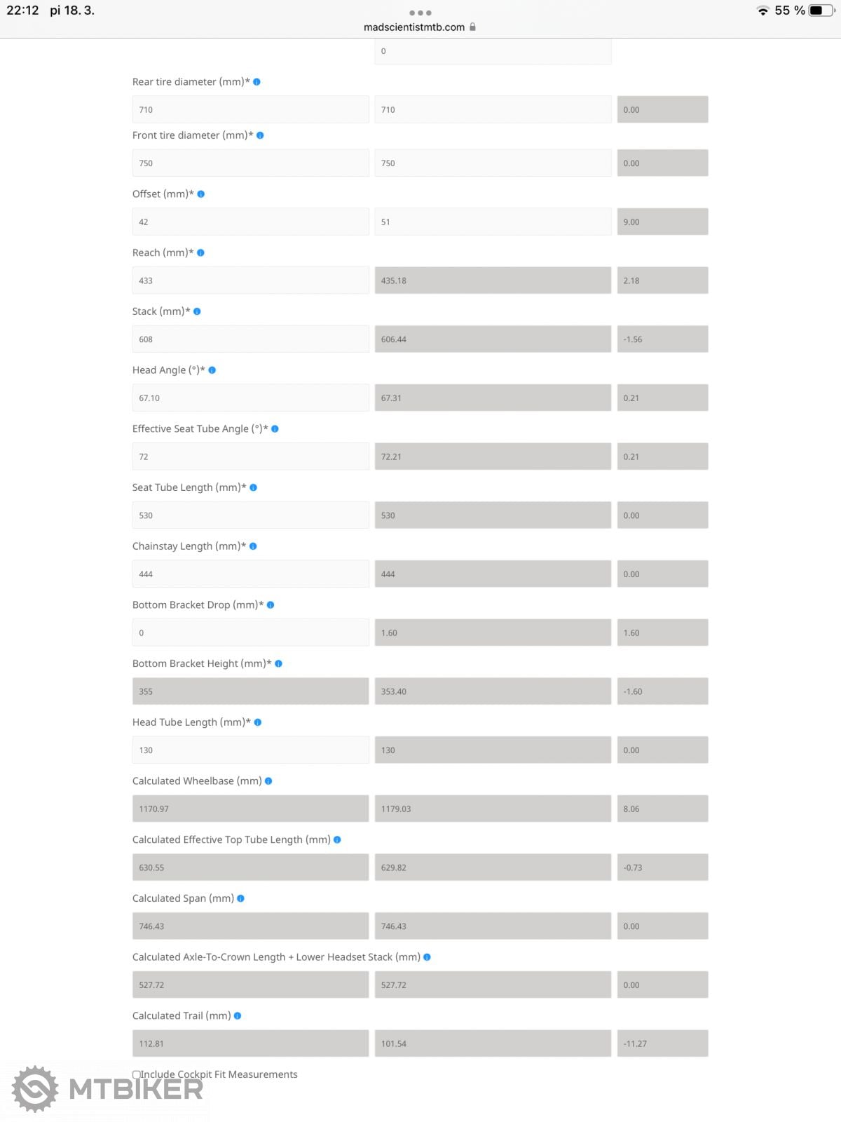 Pripadne na taketo hratky s geo je najlepsi asi https://www.bikegeocalc.com/ . Vies si tam porovnat dva biky, na rovnakom rame s roznymi vidlicami, s roznym offsetom, s roznym ac a vidis tam vsetky mozne zmeny ktore to sposobi.