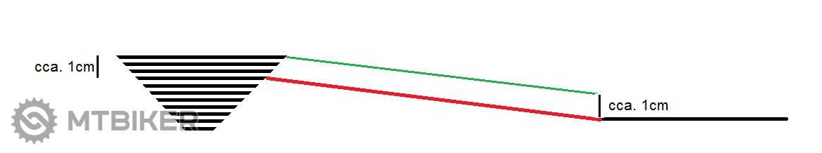 Červené na videu šlo ešte OK t.j. takýto uhol ešte je prijateľný. Pri väčšom uhle / krížení už padá reťaz. Tak ak tento uhol nemáš prekročiť a zároveň chceš aby nepadala reťaz na najväčšom pastorku, tak musíš posunúť reťazovú linku približne o danú vzdialenosť na zelenú - ten 1cm.