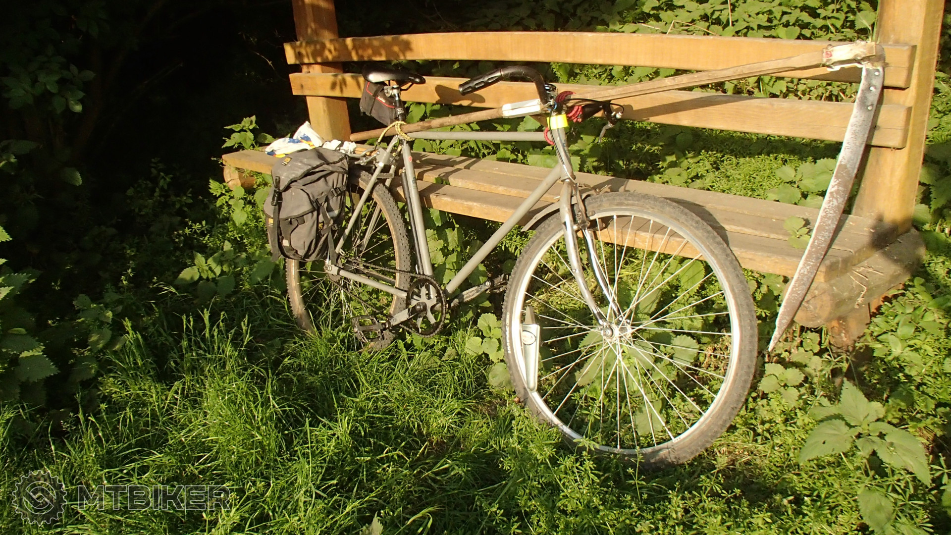 A dobre sa na tom nesie kosa alebo iné dlhé predmety, lebo nezavadzá tam kopa bovdemov ako to je na moderných bicykloch.