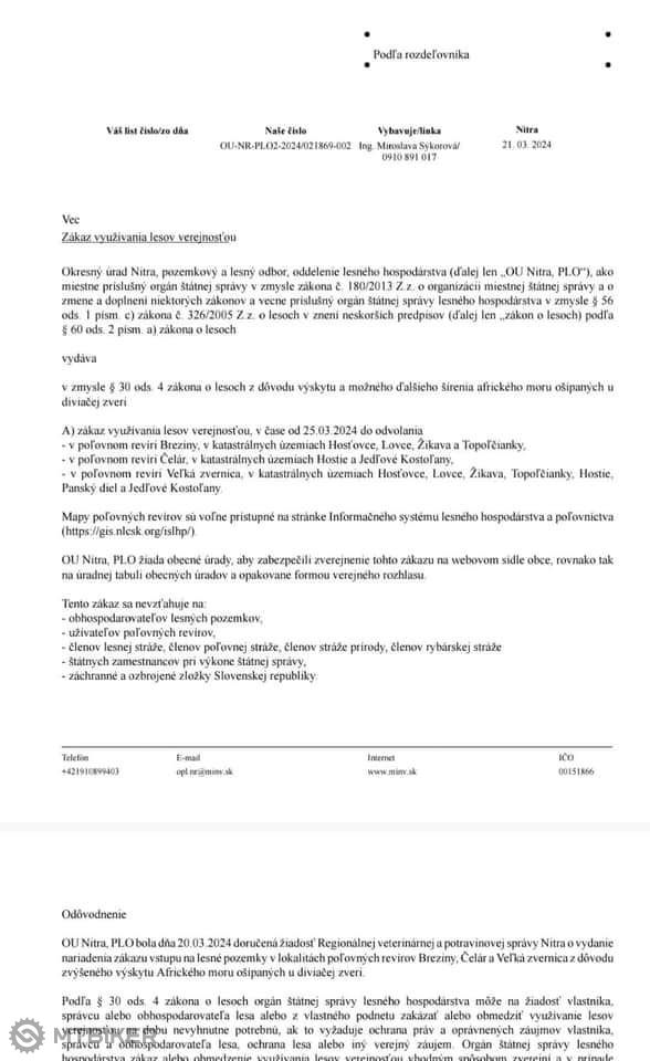 tyzden - dva a ocakavam zakaz aj u nas - zaciatkom tyzdna uz polovnici upozornovali, ze nasli uhynuteho diviaka.