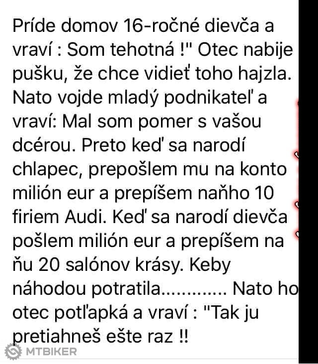 chcete. No tak jsem si vzal to kolo" Na to ten druhý: "No to jsi udělal