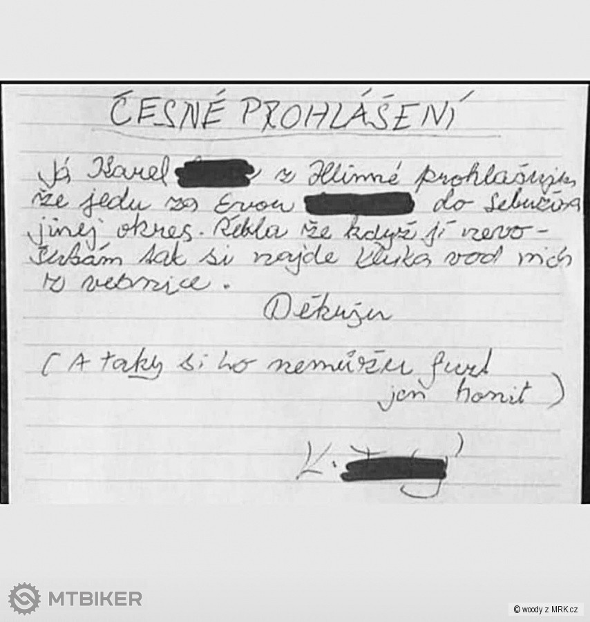 chcete. No tak jsem si vzal to kolo" Na to ten druhý: "No to jsi udělal