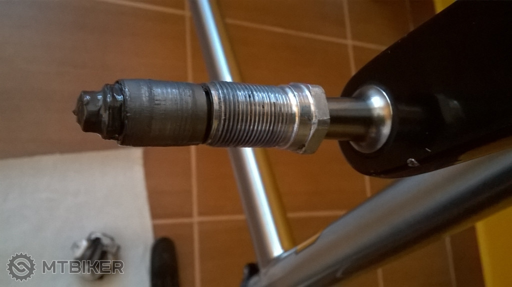 vo vnutri bol dost bordel tak som to rozobral na komplet a vycistil. zaujimave je ze druhy pedal som len dotiahol - vo vnutri bolo celkom cisto - matica na konci mala ale zlte lepidlo a valcek mal ten tmavsi koniec len na jednej strane (ako na obrazku na zaciatku temy). ten spinavy pedal mal modre lepidlo a sedu plosku na oboch koncoch valceka. asi ina zmena alebo co